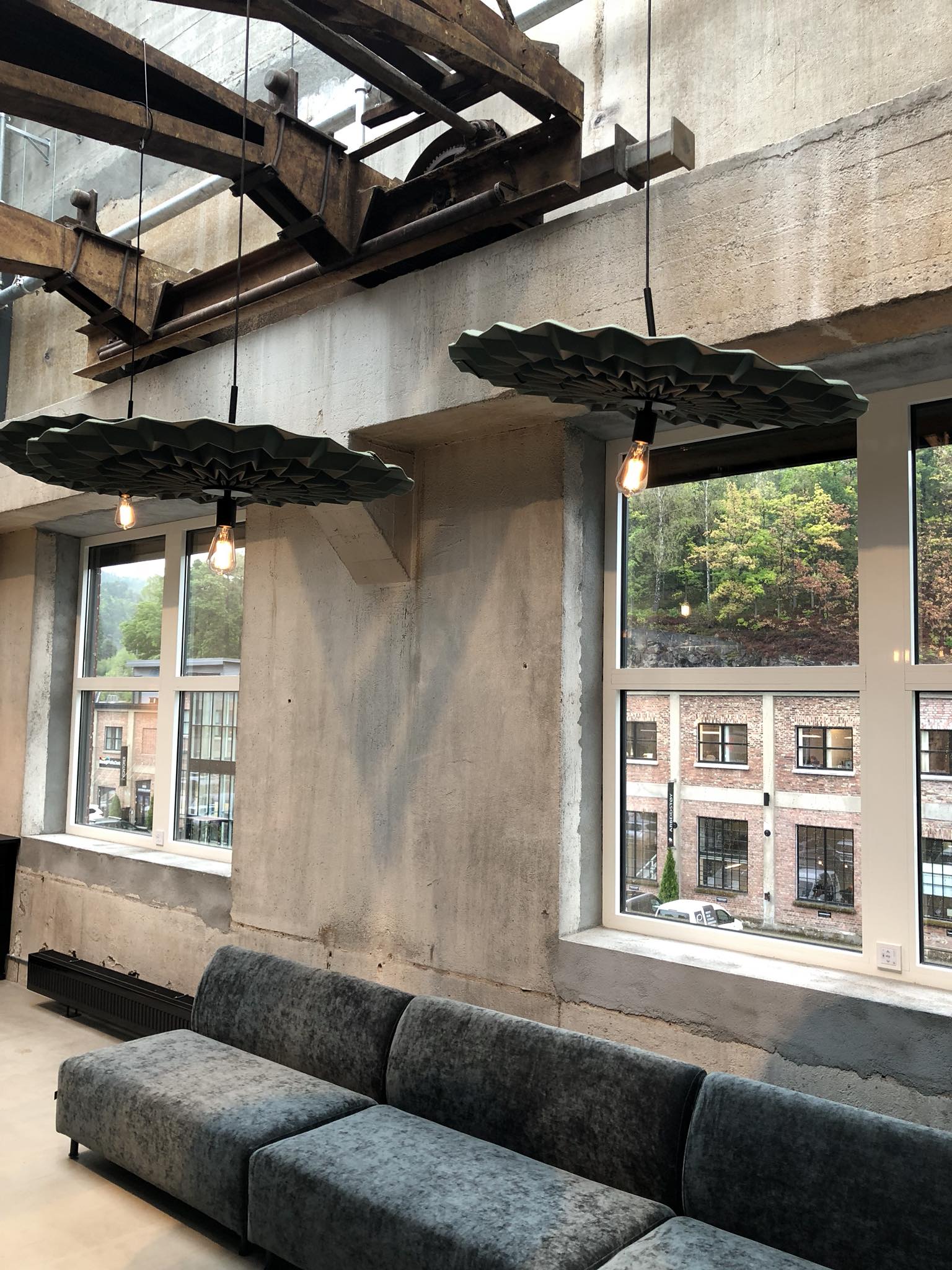 – Det er alle interiørarkitekters drøm å kunne boltre seg i alle de materialene, objektene og bygningsdetaljene som finnes i de gamle fabrikkbygningene når de skal fornyes og gis nytt liv. Det er en godterpose for oss, sier Vibeke.